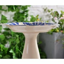 Brandy Blue and Cream Glazed Ceramic Pedestal Birdbath by Kenroy Home