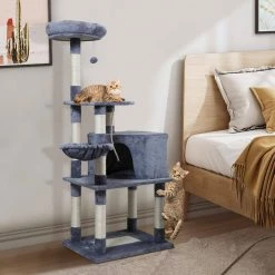 60 in. Cat Tree Tower Condo Plush Perches with Ladder for Play Rest Furniture Cover by COZIWOW
