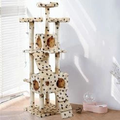 59.5 in. Cat Tree Kitten Activity Condo Penthouse W/ Scratching Post and Ladder Beige by COZIWOW