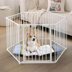 6.9 ft. x 3.3 ft. x 5.6 ft. Metal Dog Pet Kennel Cage Pen with Roof Canopy Weatherproof by COZIWOW