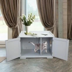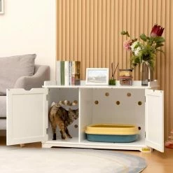 Cat Washroom Storage Bench Litter Box Enclosure with Table by COZIWOW