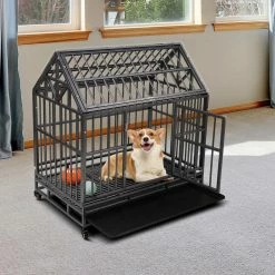 Heavy-Duty Metal Dog Kennel Cage Crate with 4 Wheels and Tray by COZIWOW
