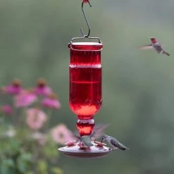 Red Antique Bottle Decorative Glass Hummingbird Feeder – 24 oz. Capacity by Perky-Pet
