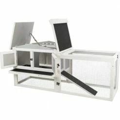 Natural Wooden Hutch House with Double Run, Removable Tray and Waterproof Roof – Large by PawHut