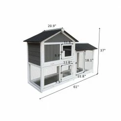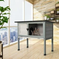 Wooden Elevated Rabbit Hutch Bunny Cage Small Animal House in Gray with Removable Tray by WELLFOR