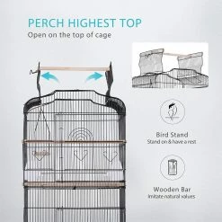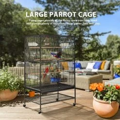 59.8 in. Wrought Iron Bird Cage with Play Top and Rolling Stand by VIVOHOME