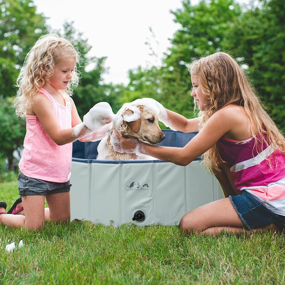 Summer is quite a hot season in which your kids would love to play in the water.This instant swimming pool can bring them a cool summer, safe and enjoyable. Besides, it can be an optimum bath tub for your dogs as well. with PVC fabrics and compressed boards, it gets outstanding leakage control and great sturdiness. Quick forming for use and fast draining, it makes every minute worth. No matter washing your pets or creating a water fairyland, this pool would work well. After use you can easily fold it for storage thanks to its collapsible structure. Convenient and fun, time to start an enthusiastic summer.