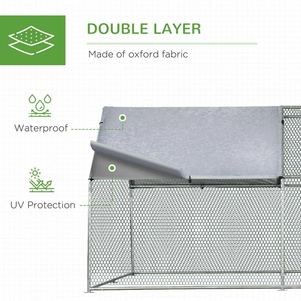 PawHut outdoor cages offer protection to your pets while offering them the freedom of fresh air. Our solid galvanized metal frames, Oxford-welded hexagonal wire mesh walls and durable weather-resistant covers are constructed to last for years and offer you peace of mind for the safety of your animals in the outdoor environment. Don’ hesitate to buy it.