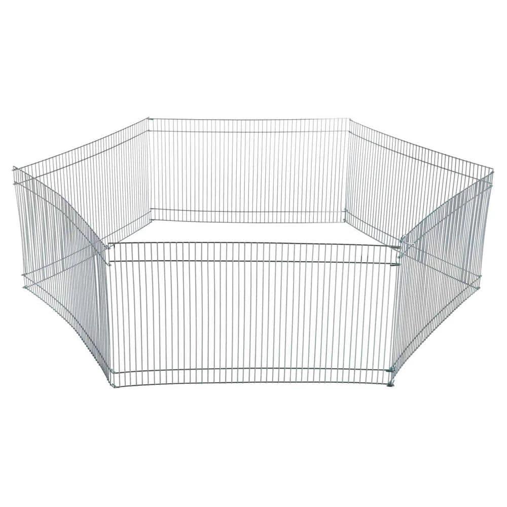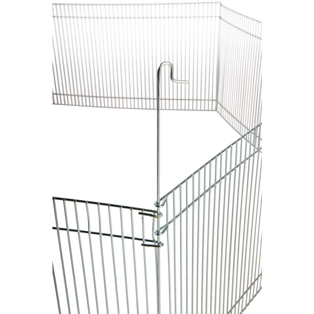 Create a great play area for your little furry buddy with the TRIXIE Small Animal Playpen. The galvanized wire design allows for optimal visibility of your pet while they enjoy their free time. Also allowing for great ventilation. Our exercise pen is the perfect size for hamsters, hedgehogs, gerbils, guinea pigs, and other non-jumping small animals. Designed to give them an area of over 6 sq. ft. of room to play, exercise, or rest. It can be used indoors and outdoors with proper supervision. Our playpen sets up in seconds and no tools are required. Take down is a “snap” as it folds flat for convenient storage and easy travel.