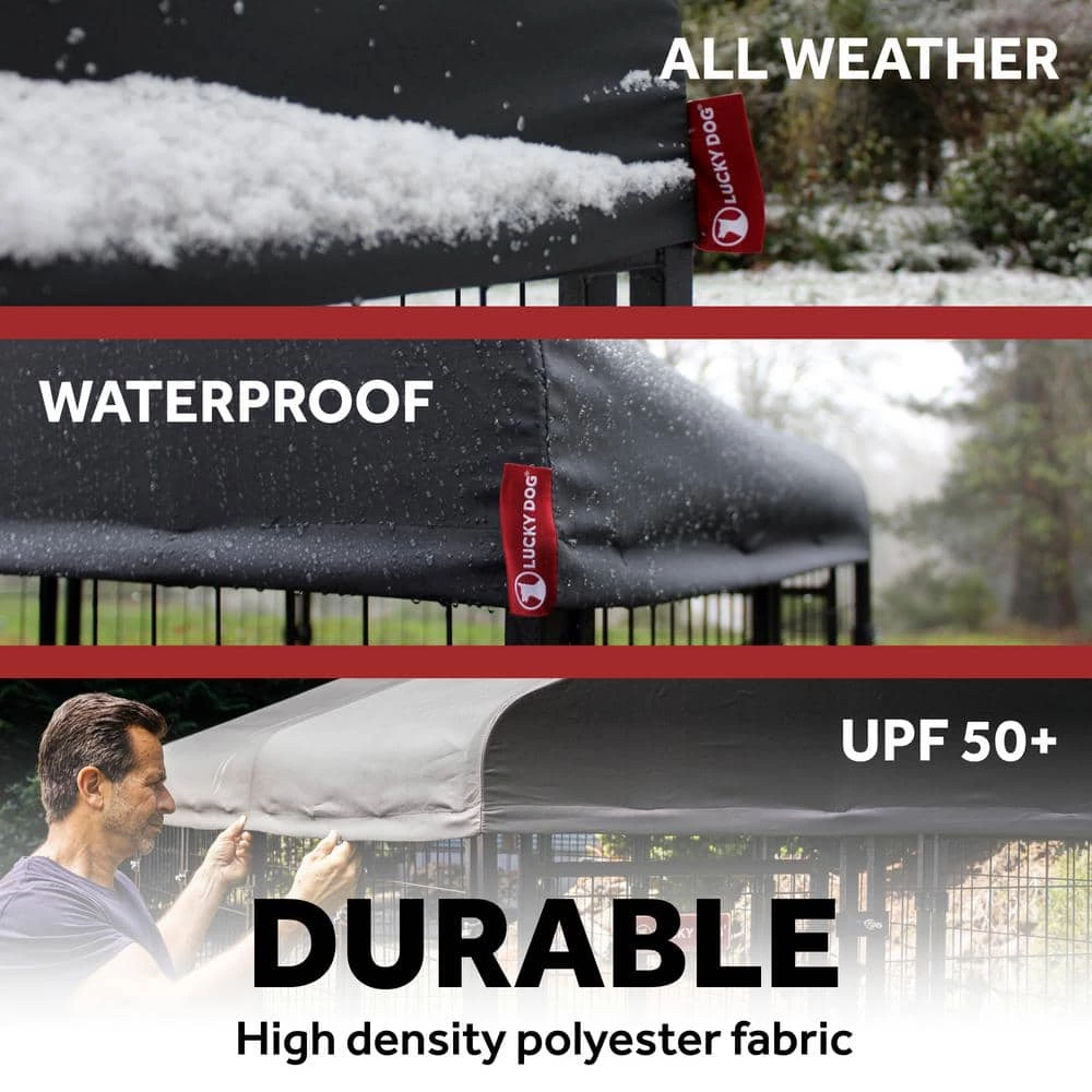 Give your dog the very best. With sleek style and durable design, the Lucky Dog STAY Series Kennel is built with a long-lasting steel frame and powder coated finish. The waterproof polyester cover offers UPF 50+ protection and is designed for ultimate comfort. Featuring premium style that will compliment any yard, the cover includes hidden Velcro attachments. Designed to provide your dog with the very best, the Lucky Dog STAY Series Kennel delivers quality and luxury in 1.