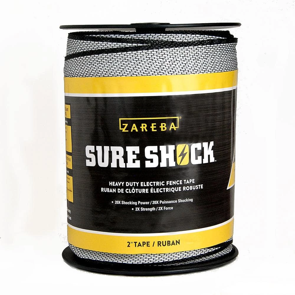 This reel of Sure Shock electric fence tape features 14 highly conductive aluminum wires, which deliver 20X shocking power to livestock that test the fence line. Each 500 ft. strand of 2 in. Sure Shock polytape is woven with PVC-coated fiberglass that’s been lock-stitched to deliver double the normal tensile strength. Sure Shock tape is ideal for equine fencing because this bright white polytape is far more visible to horses than traditional electric fence wire. Other animals that react to visual cues, including cattle, pigs and some exotics, are also ideal for containment with Zareba Sure Shock polytape. This highly durable poly fencing has a 1,000 lbs. tensile strength and is backed by Zareba with a 5-year limited warranty. For complete details of the warranty, check the product label.