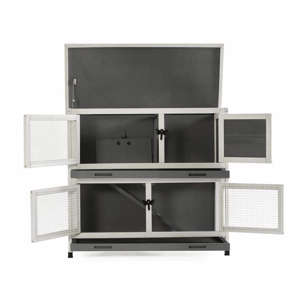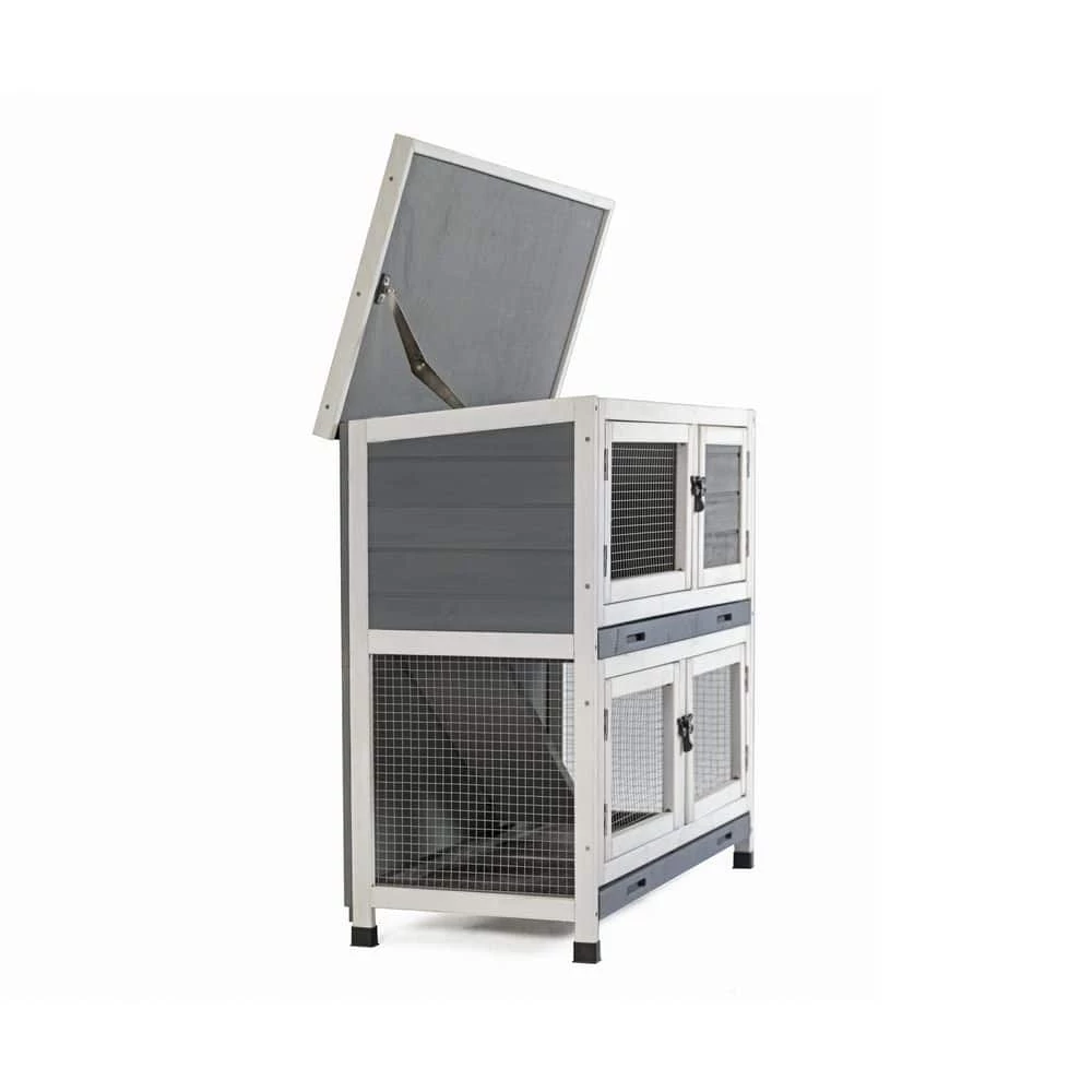 Made of natural fir wood with healthy painting.Two galvanized pull-out trays can be easily removed to clean the first story and second layer of rest zone, no leak or rust.Easy to assemble with pre-drilled holes with the detailed instructions.