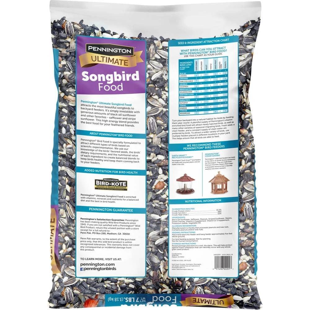 Pennington Ultimate Songbird Food Blend attracts the most beautiful songbirds to backyard feeders. It’s simply irresistible with generous amounts of black oil sunflower and other favorites – safflower seed and striped sunflower. This high energy bird feed and seed blend provides the best bird food for your feathered friends.