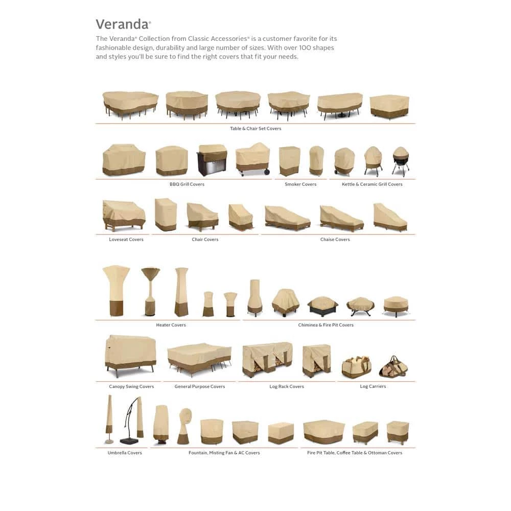 - CLASSIC ACCESSORIES VERANDA PATIO SET COVERS: You’ll be sure to find the right covers to fit your needs with over 140 shapes and styles in the Veranda Collection from Classic Accessories