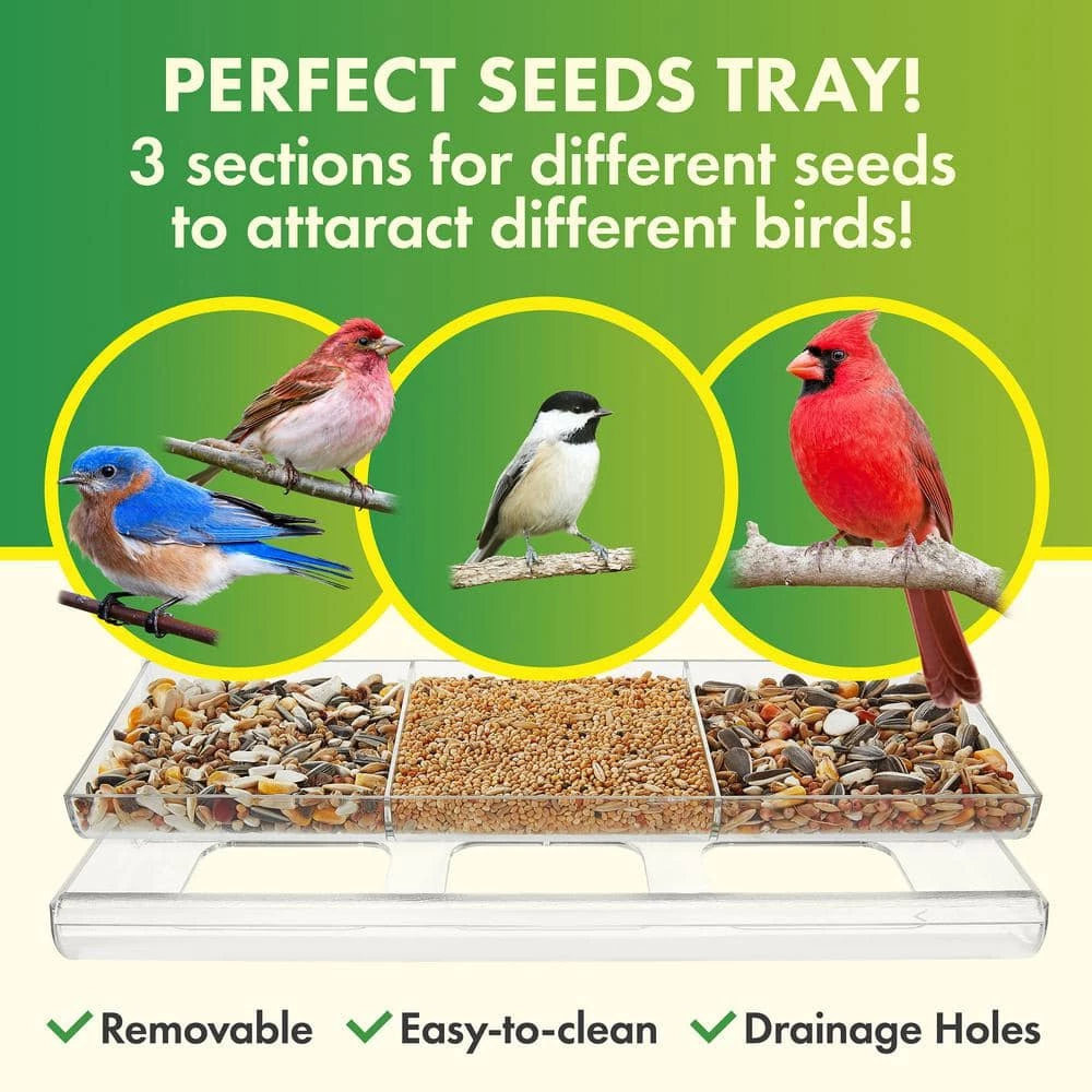 - Triple attraction – entice birds of every feather with DF OMER, draw birds of many sizes, colors and songs to your window by placing 3 different types of seed in your tray’s 3-sections
